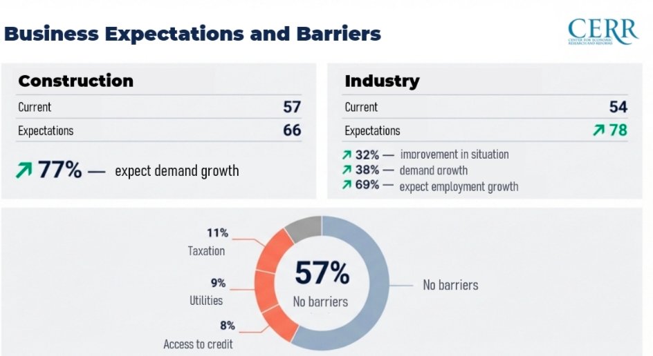 70% of entrepreneurs expect demand for their services to grow over the next three months, compared to 58% in January 2025. The share of enterprises expecting to increase employment in the coming quarter amounted to 61%, up from 54% a year earlier.