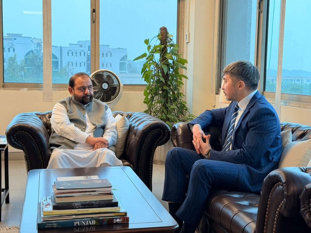 Islamabad, April 7, 2026: Ambassador of Kazakhstan to Pakistan, Yerzhan Kistafin, met with Federal Minister for National Heritage and Culture, Aurangzeb Khan Khichi, to discuss strengthening bilateral ties in the cultural and humanitarian sectors.During the meeting, both sides reviewed progress on agreements reached during the recent visit of Kassym-Jomart Tokayev to Pakistan and explored new avenues for collaboration under the cultural cooperation roadmap.In view of the expected visit of Prime Minister Shehbaz Sharif to Astana, the ambassador proposed developing a comprehensive joint cultural program.